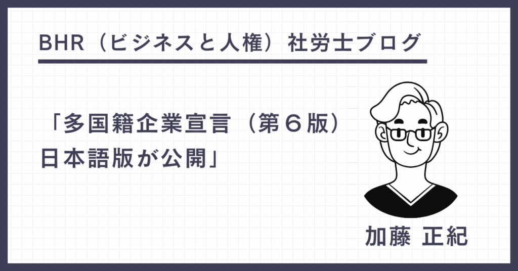 2024年4月3日寄稿 ILO駐日事務所は、3月末、「多国籍企業及び社会政策に関する原則の三者宣言」(第6版)の日本語版を公開しました。 https://www.ilo.org/ja/resource/news/%E5%A4%9A%E5%9B%BD%E7%B1%8D%E4%BC%81%E6%A5%AD%E5%AE%A3%E8%A8%80-%E7%AC%AC-...